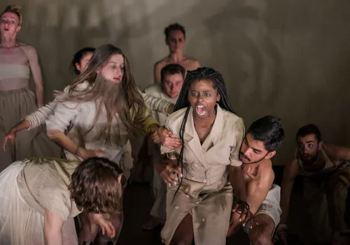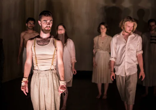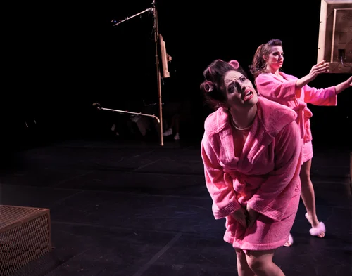Stacey Sterns directs a movement piece based on the essay by Karinne Keithley “Montgomery Park, Or, Opulence: An Essay in the Form of a Building”. In a magnetic mise en scène Sterns honors the text in its surreal contemplation of the forms of human consciousness in a fictional asylum. The symbiotic relation between the space and the characters allowed me to embrace a design process that understood the building as one of the characters. The costume design for the piece evokes the poetic nature of a text that addresses the beauty of human vulnerability, contradiction, and melancholy.